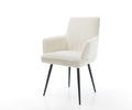 The elegant bouclé fabric stands out with its soft, skin-friendly feel and remarkable durability. Easy to care for and resilient, it comes in a warm white shade that brings timeless charm and stylish accents to any dining room setting.