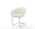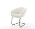 The elegant bouclé fabric stands out with its soft, skin-friendly feel and remarkable durability. Easy to care for and resilient, it comes in a warm white shade that brings timeless charm and stylish accents to any dining room setting.