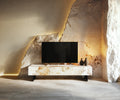 The Cuor TV stand combines architectural ceramic elegance with refined functionality, creating a luxurious focal point for contemporary living rooms.